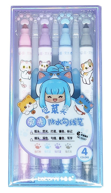 名稱: 4色螢光防水勾線筆 編號: BT11264 售價: HK$13.00/排