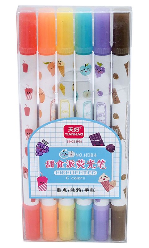 名稱: 6色甜食派螢光筆 編號: BT11216A 售價: HK$19.00/盒